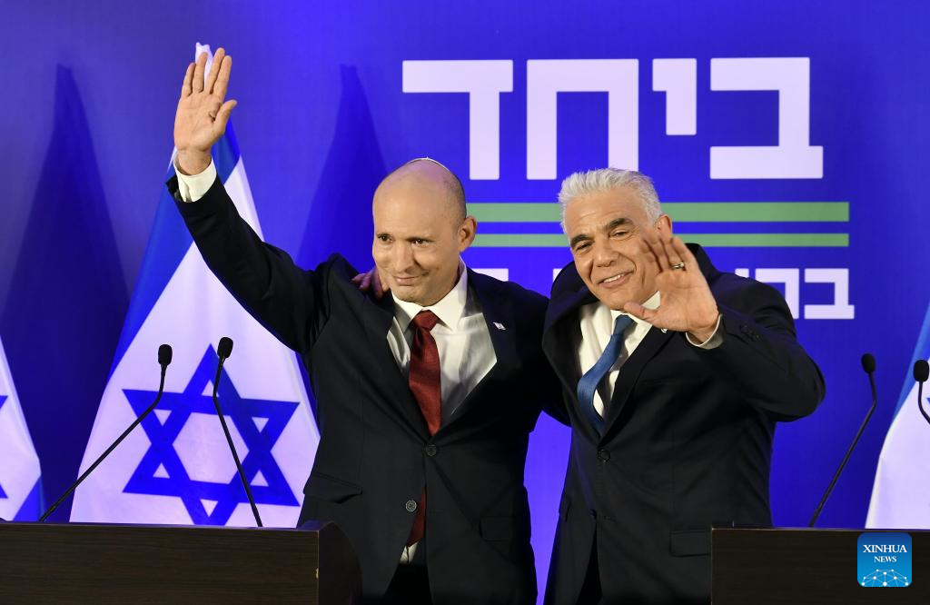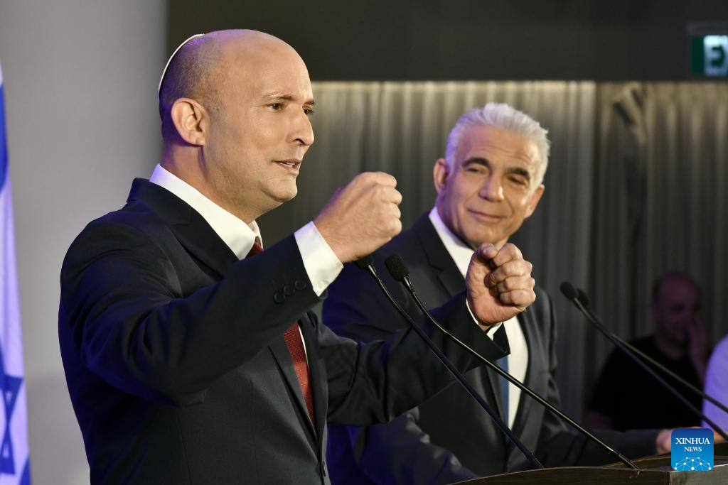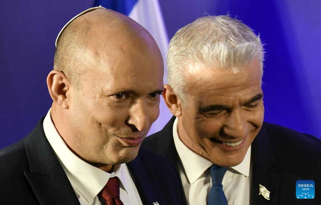 JERUSALEM, April 26 (Xinhua) -- Israeli opposition leader Yair Lapid and former Prime Minister Naftali Bennett said on Sunday that they will run together in this year's elections, aiming to unseat incumbent Prime Minister Benjamin Netanyahu.