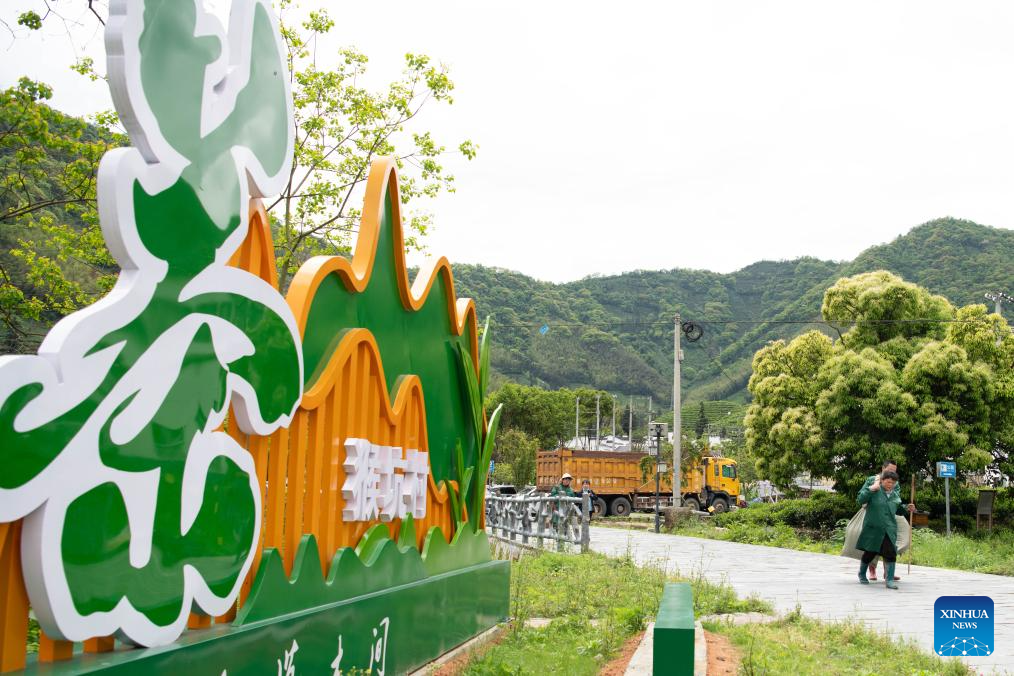 A tea farmer walks towards tea gardens in Houkeng Village, Huangshan District of Huangshan City, east China's Anhui Province, April 24, 2026. Taiping Houkui is a renowned green tea from Anhui, known for its flat, elongated leaves. It offers a unique aroma, mellow taste, and sweet aftertaste. Recently, the core production area of Taiping Houkui, the high-mountain tea gardens in Houkeng Village of Huangshan City, have entered the busiest harvest season.