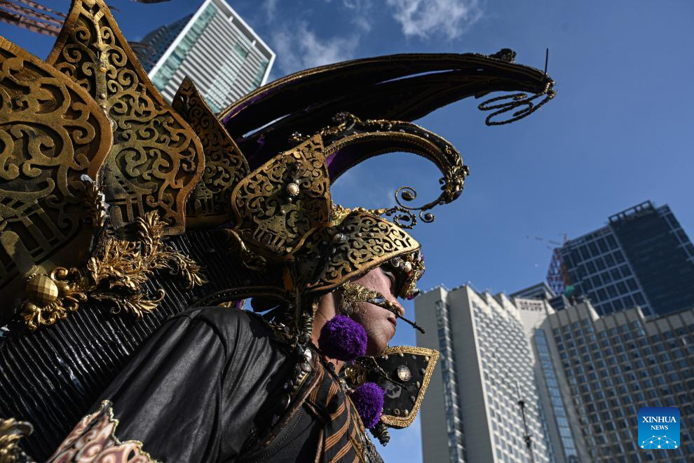 A dancer is pictured during a cultural event to welcome International Dance Day in Jakarta, Indonesia, April 26, 2026. (Xinhua/Agung Kuncahya B.)