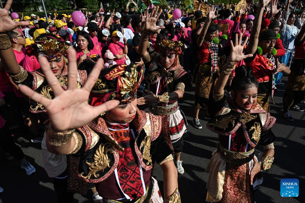 Dancers participate in a cultural event to welcome International Dance Day in Jakarta, Indonesia, April 26, 2026. (Xinhua/Agung Kuncahya B.)