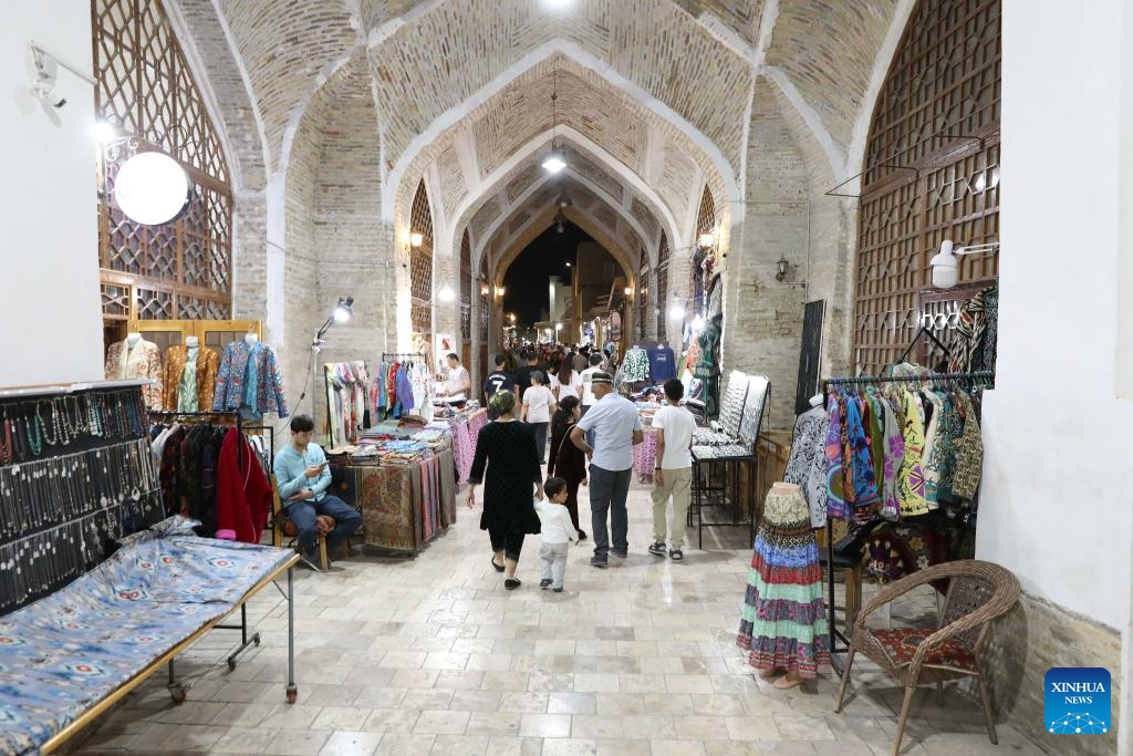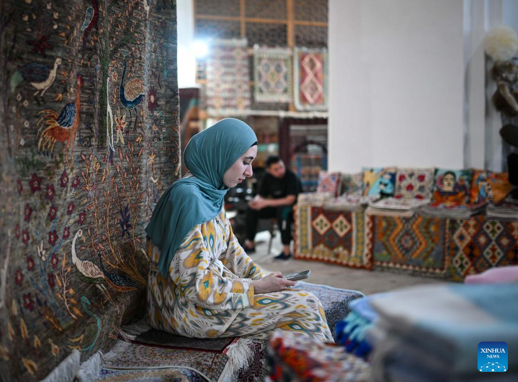 A vendor waits for customers in the ancient city of Bukhara, Uzbekistan on April 25, 2026. (Xinhua/Li Renzi)
