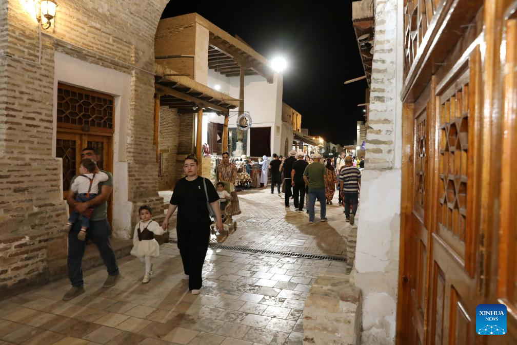Tourists enjoy themselves in the ancient city of Bukhara, Uzbekistan on April 25, 2026. (Xinhua/Li Renzi)