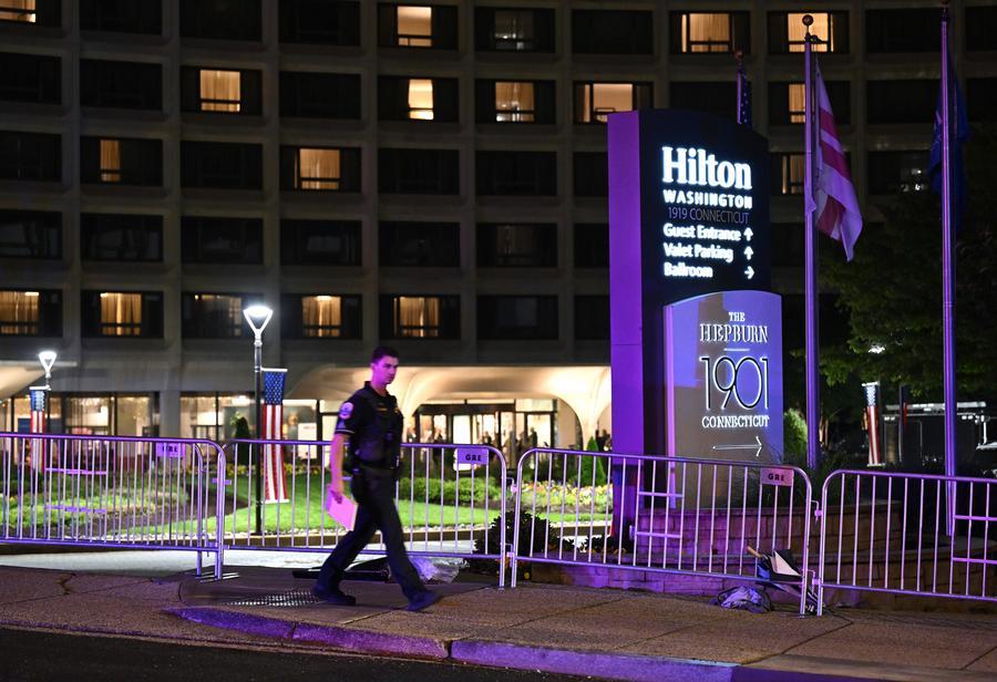 WASHINGTON, April 27 (Xinhua) -- A gunman armed with a shotgun, handgun and knives stormed a security checkpoint outside the White House Correspondents' Dinner on Saturday, exchanging fire with Secret Service agents and forcing President Donald Trump and dozens of senior officials to evacuate the event.