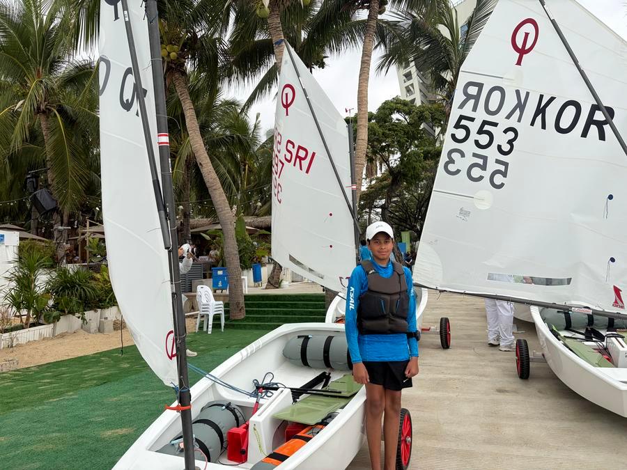 Thani, 14, who competed in the boys' ILCA4 class for athletes born in 2009 or later, finished 17th. The ILCA4 boat is slightly larger, with a sail area of about 4.7 square meters.
