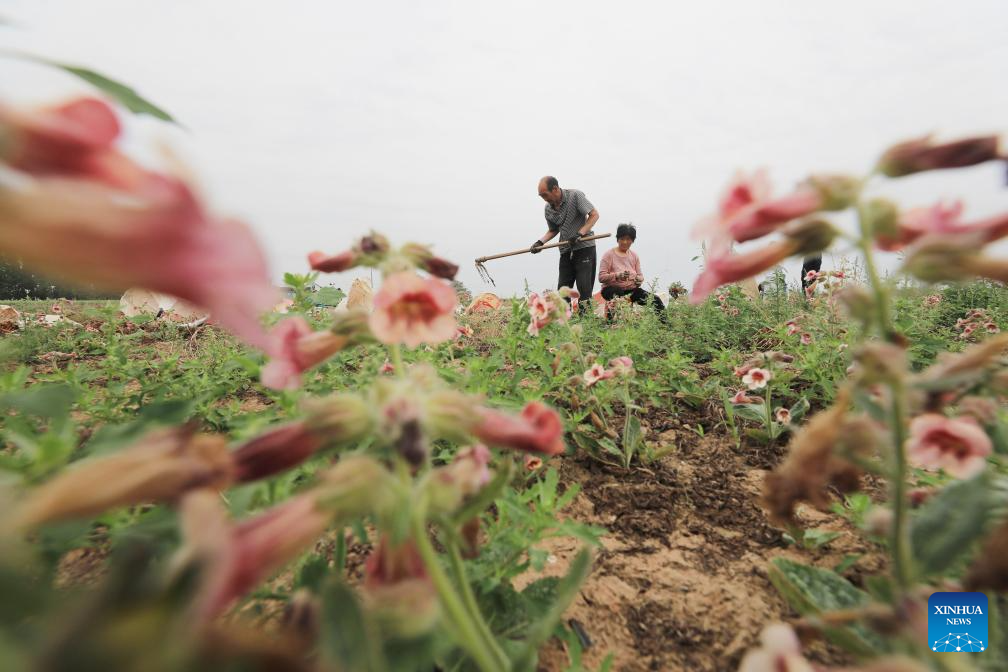 A farmer works in a sunflower field in Xiying Town of Luancheng District, Shijiazhuang City of north China's Hebei Province, April 27, 2026. (Photo by Li Mingfa/Xinhua)