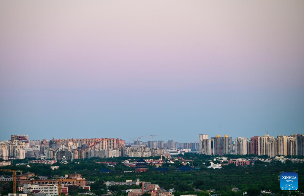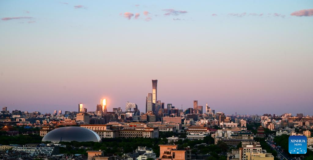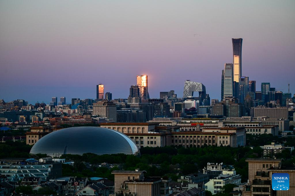 This photo taken on April 28, 2026 shows the city skyline at dusk in Beijing, capital of China. (Xinhua/Chen Yehua)