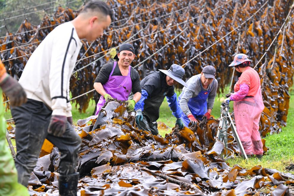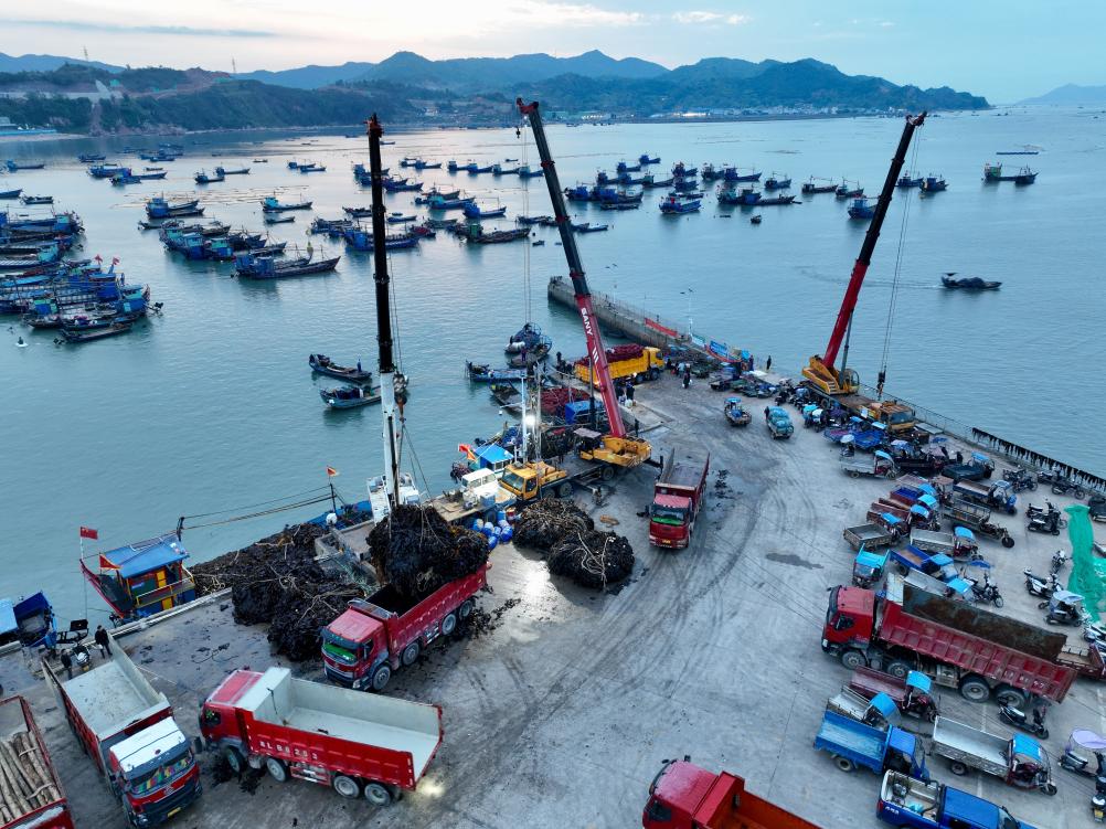 A drone photo taken on April 25, 2026 shows a truck loaded with kelp running on the Dongwuyang grand bridge along the Ningde-Shangrao Expressway in Xiapu County, Ningde City, southeast China's Fujian Province. (Xinhua/Jiang Kehong)Fishermen hang kelp on ropes to dry in Xiahu Town of Xiapu County, Ningde City, southeast China's Fujian Province, April 25, 2026. (Xinhua/Jiang Kehong)Fishermen hang kelp on ropes to dry in Xiahu Town of Xiapu County, Ningde City, southeast China's Fujian Province, April 25, 2026. (Xinhua/Jiang Kehong)Fishermen harvest kelp in Shajiang Town of Xiapu County, Ningde City, southeast China's Fujian Province, April 26, 2026. (Photo by Chen Weibin/Xinhua)A fisherman dries kelp at dawn in Shajiang Town of Xiapu County, Ningde City, southeast China's Fujian Province, on April 26, 2026. (Photo by Chen Weibin/Xinhua)Fishermen hang kelp on ropes to dry in Xiahu Town of Xiapu County, Ningde City, southeast China's Fujian Province, April 25, 2026. (Xinhua/Jiang Kehong)This photo taken on April 25, 2026 shows kelp hung on ropes to dry in Xiahu Town of Xiapu County, Ningde City, southeast China's Fujian Province. (Xinhua/Jiang Kehong)This photo taken on April 25, 2026 shows kelp hung on ropes to dry in Xiahu Town of Xiapu County, Ningde City, southeast China's Fujian Province. (Xinhua/Jiang Kehong)A drone photo taken on April 26, 2026 shows fishermen drying kelp in Shajiang Town of Xiapu County, Ningde City, southeast China's Fujian Province. (Photo by Chen Weibin/Xinhua)An aerial drone photo taken on April 26, 2026 shows fishermen drying kelp in Shajiang Town of Xiapu County, Ningde City, southeast China's Fujian Province. (Photo by Chen Weibin/Xinhua)A fisherman loads kelp onto a truck at a dock in Xiahu Town of Xiapu County, Ningde City, southeast China's Fujian Province, April 25, 2026. (Xinhua/Jiang Kehong)A drone photo taken on April 25, 2026 shows fishermen transferring kelp at a dock in Xiahu Town of Xiapu County, Ningde City, southeast China's Fujian Province. (Xinhua/Jiang Kehong)A drone photo taken on April 25, 2026 shows fishermen harvesting kelp in Xiahu Town of Xiapu County, Ningde City, southeast China's Fujian Province. (Xinhua/Jiang Kehong)A drone photo taken on April 25, 2026 shows fishermen transferring kelp at a dock in Xiahu Town of Xiapu County, Ningde City, southeast China's Fujian Province. (Xinhua/Jiang Kehong)A drone photo taken on April 25, 2026 shows fishermen transferring kelp at a dock in Xiahu Town of Xiapu County, Ningde City, southeast China's Fujian Province. (Xinhua/Jiang Kehong)This photo taken on April 25, 2026 shows fishermen transferring kelp at a dock in Xiahu Town of Xiapu County, Ningde City, southeast China's Fujian Province. (Xinhua/Jiang Kehong)Fishermen hang kelp on ropes to dry in Xiahu Town of Xiapu County, Ningde City, southeast China's Fujian Province, April 25, 2026. (Xinhua/Jiang Kehong)