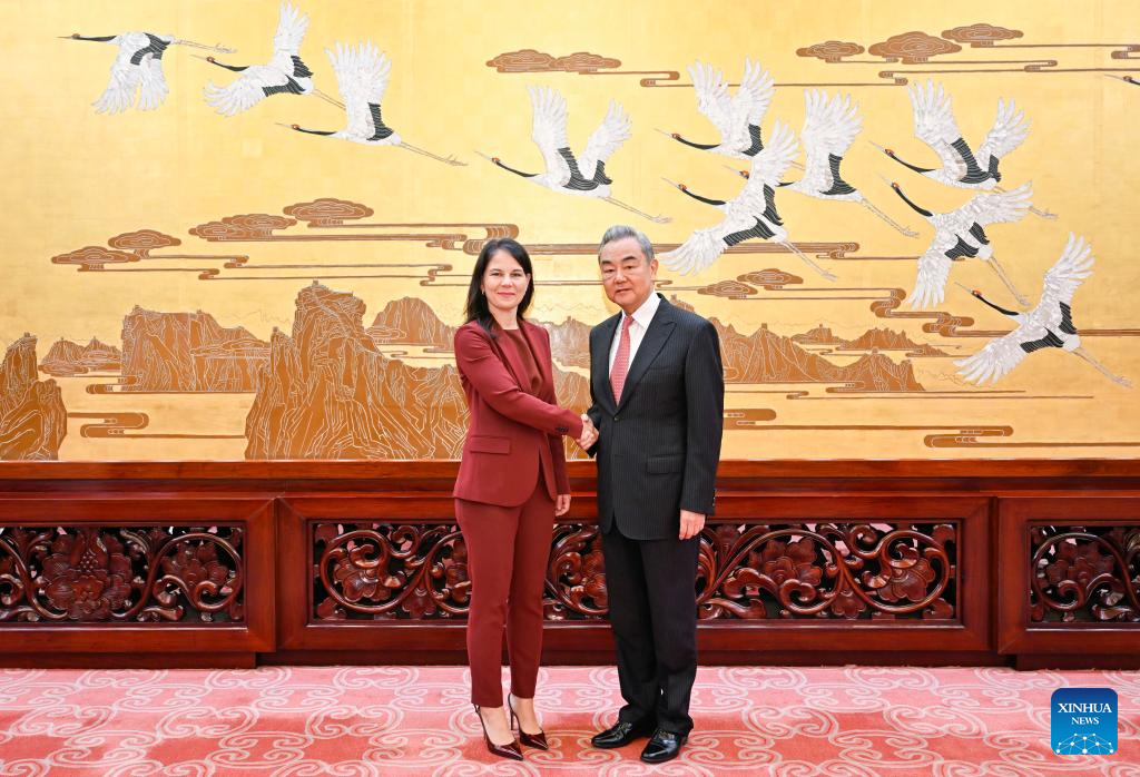 Chinese Foreign Minister Wang Yi, also a member of the Political Bureau of the Communist Party of China Central Committee, meets with President of the 80th Session of the United Nations General Assembly, Annalena Baerbock, in Beijing, capital of China, April 29, 2026. (Xinhua/Yue Yuewei)
