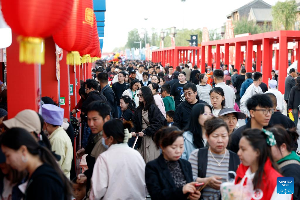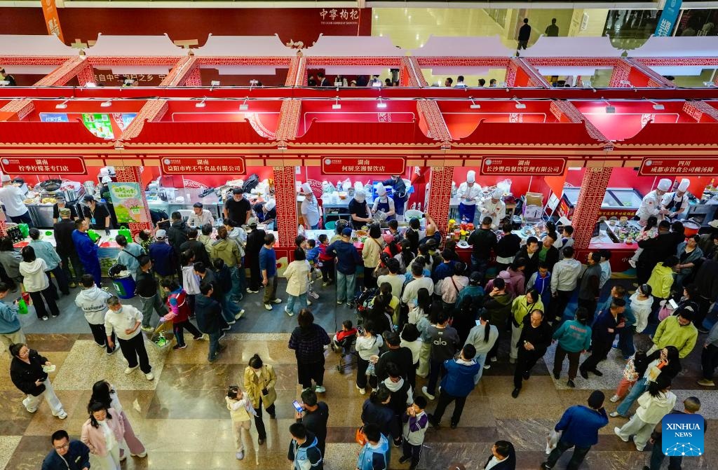 Consumers visit a food fair during a Chinese cuisine carnival in Wuzhong, northwest China's Ningxia Hui Autonomous Region, on April 28, 2026. (Xinhua/Wang Peng)