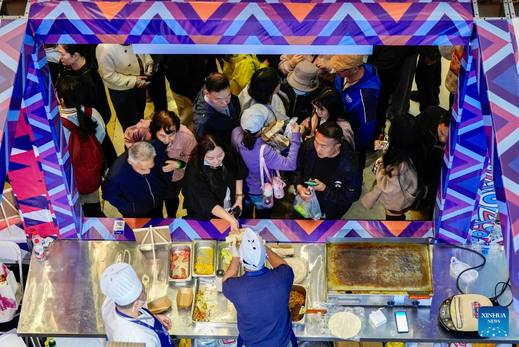 Consumers enjoy food during a Chinese cuisine carnival in Yinchuan, northwest China's Ningxia Hui Autonomous Region, on April 28, 2026. (Xinhua/Yang Zhisen)