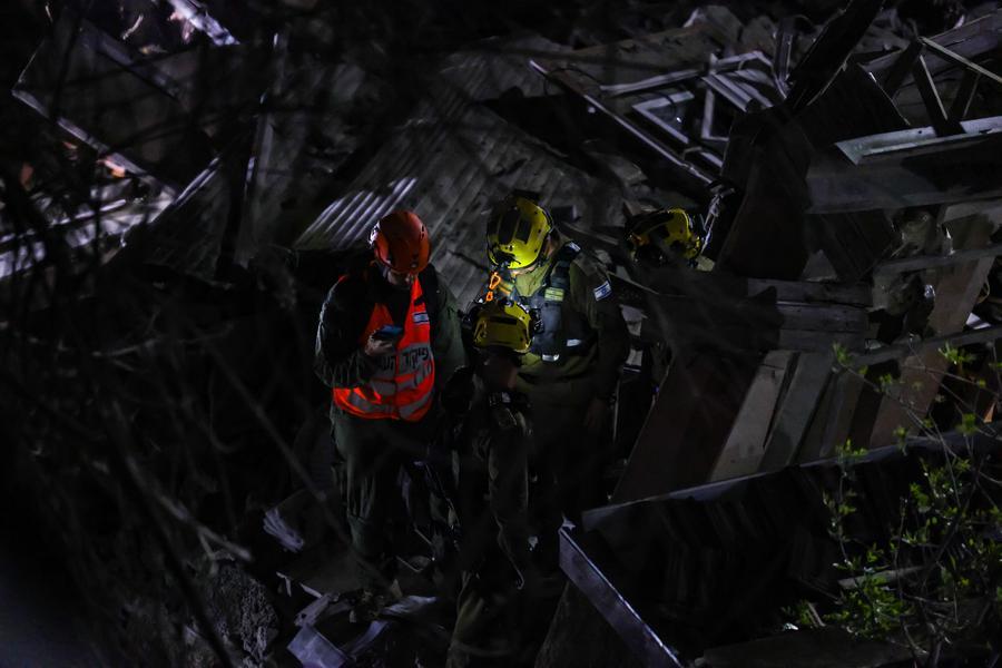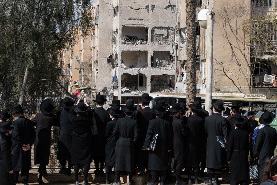 JERUSALEM, April 28 (Xinhua) -- The broken glass in Raanan Peltz's office had not yet been swept up. He waved me in anyway. With every step, shards crunched underfoot.
