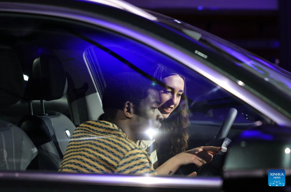 People experience a Geely vehicle in Paris, France on April 28, 2026. Geely Auto officially launched two electric SUVs, the Starray EM-i and the Geely E5, at an event in Paris, France on Tuesday. (Xinhua/Wu Huiwo)