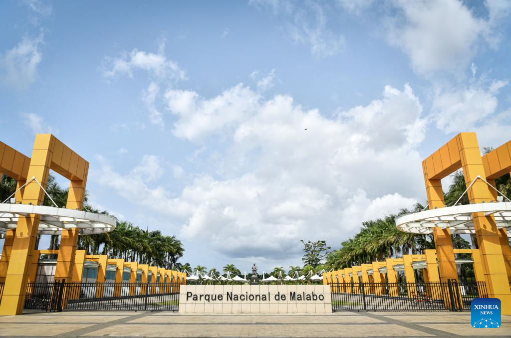 This photo taken on May 19, 2024 shows the entrance to Malabo National Park in Malabo, the capital of Equatorial Guinea. Constructed by the China Road and Bridge Corporation (CRBC), Malabo National Park, one of the largest city parks in Central Africa, was officially put into operation in 2016. The construction of the park has brought numerous job opportunities for local people and enriched the cultural life of Equatorial Guinea. (Xinhua/Han Xu)