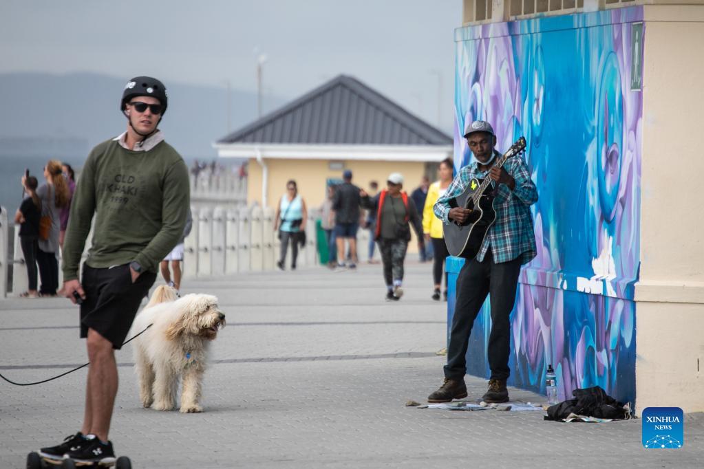 Pedestrians wearing face masks walk on the seaside in Cape Town, South Africa, Dec. 5, 2021. South Africa has entered the fourth wave of the pandemic with the new variant at the center of the rise in cases, Health Minister Joe Phaahla said at a briefing on Friday. (Xinhua/Lyu Tianran)