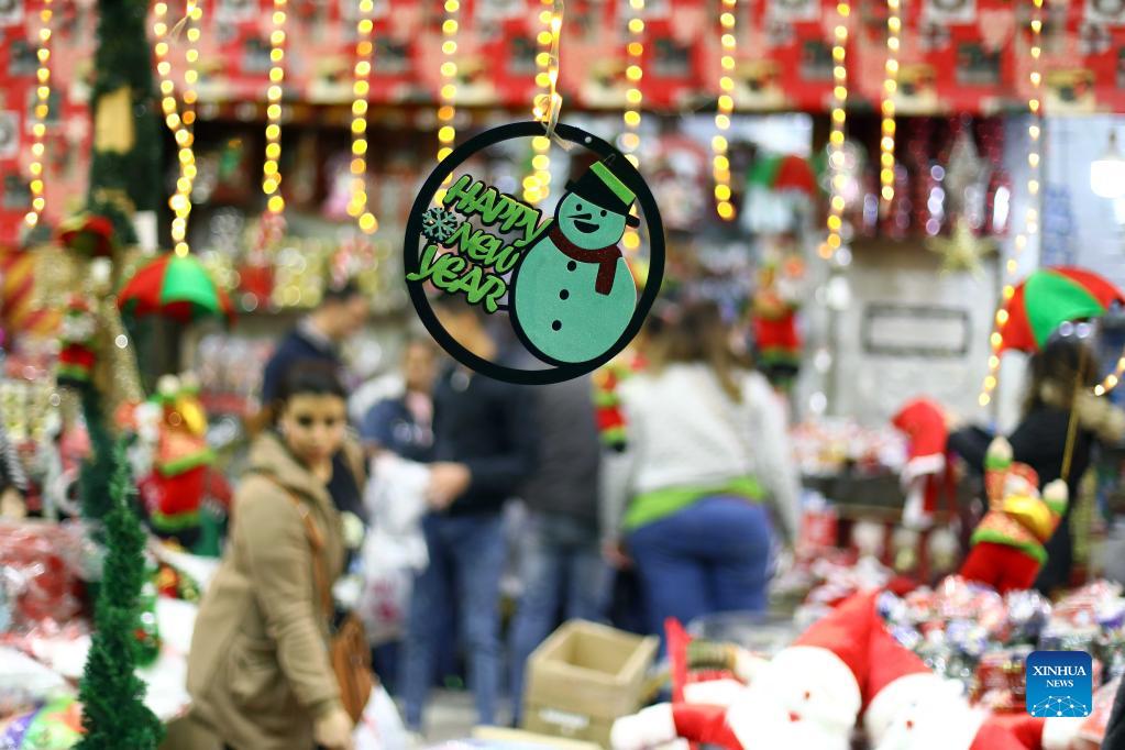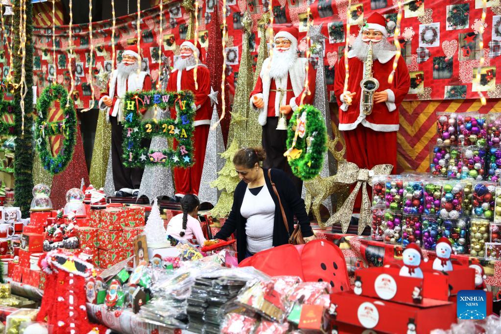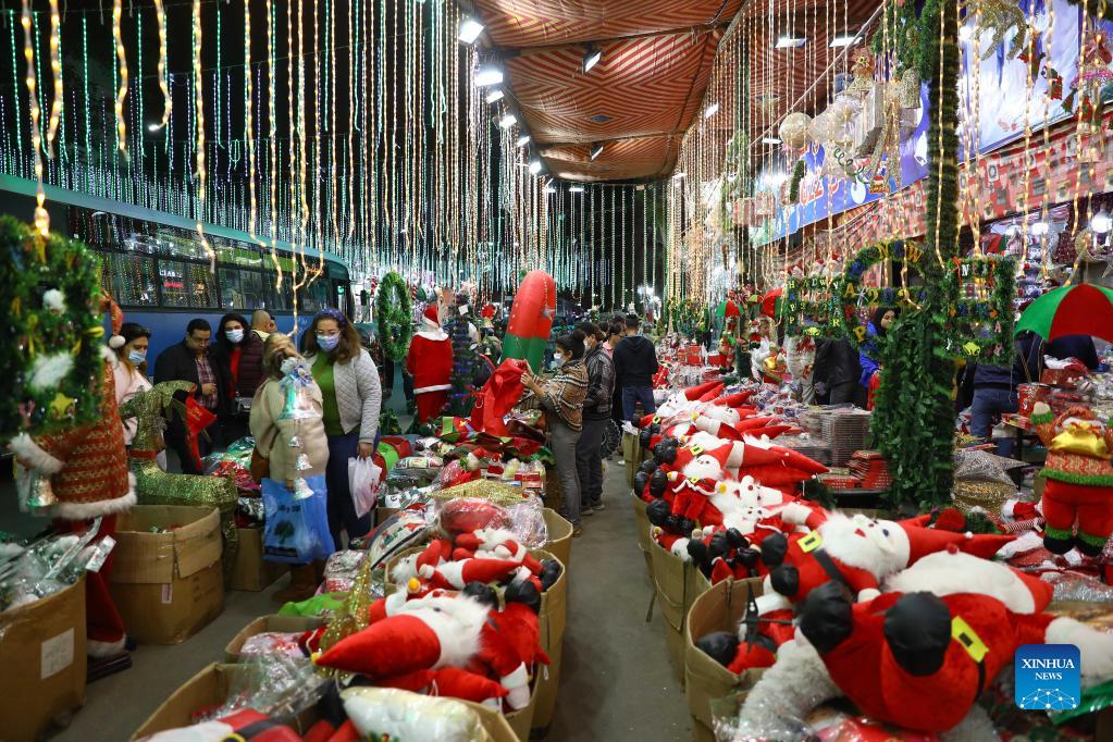 People shop for decorations at a Christmas market in Cairo, Egypt, on Dec. 15, 2021. (Xinhua/Ahmed Gomaa)