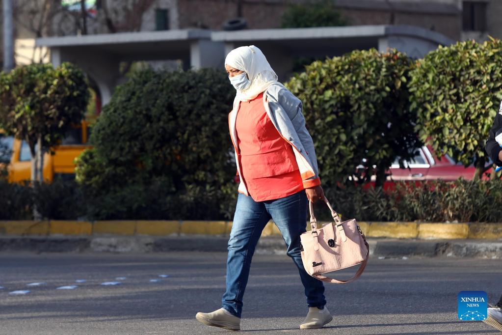 A woman wearing a mask walks on a street in Cairo, Egypt, Dec. 18, 2021. Egypt confirmed its first three cases of COVID-19 Omicron variant, the Health Ministry announced late on Friday. Two of the cases are not showing any symptoms, while the third suffers mild symptoms, the ministry said in a statement. (Xinhua/Ahmed Gomaa)