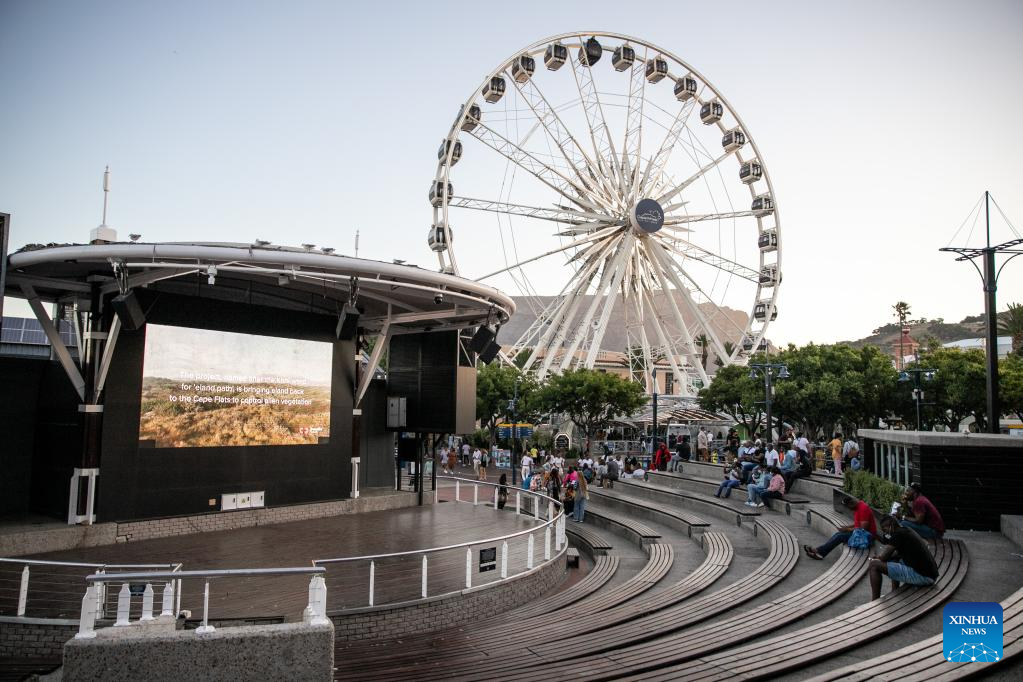 Visitors sit at an amphitheater at V&A Waterfront, a popular tourism attraction in Cape Town, South Africa, on Dec. 23, 2021. (Xinhua/Lyu Tianran)