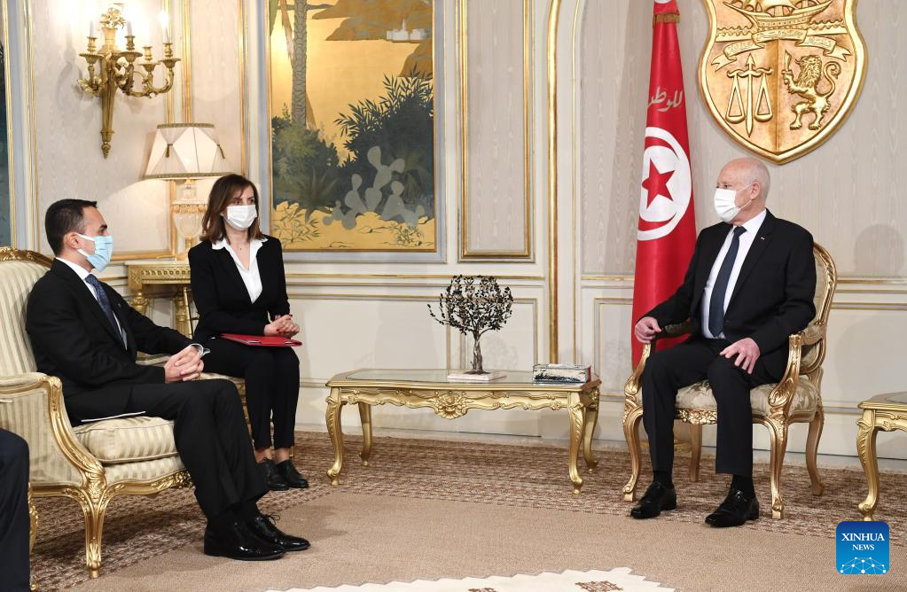 TUNIS, Dec. 28 (Xinhua) -- Tunisian President Kais Saied and visiting Italian Foreign Minister Luigi Di Maio on Tuesday urged efforts to tackle the root causes of illegal immigration and combat human trafficking on both sides of the Mediterranean.