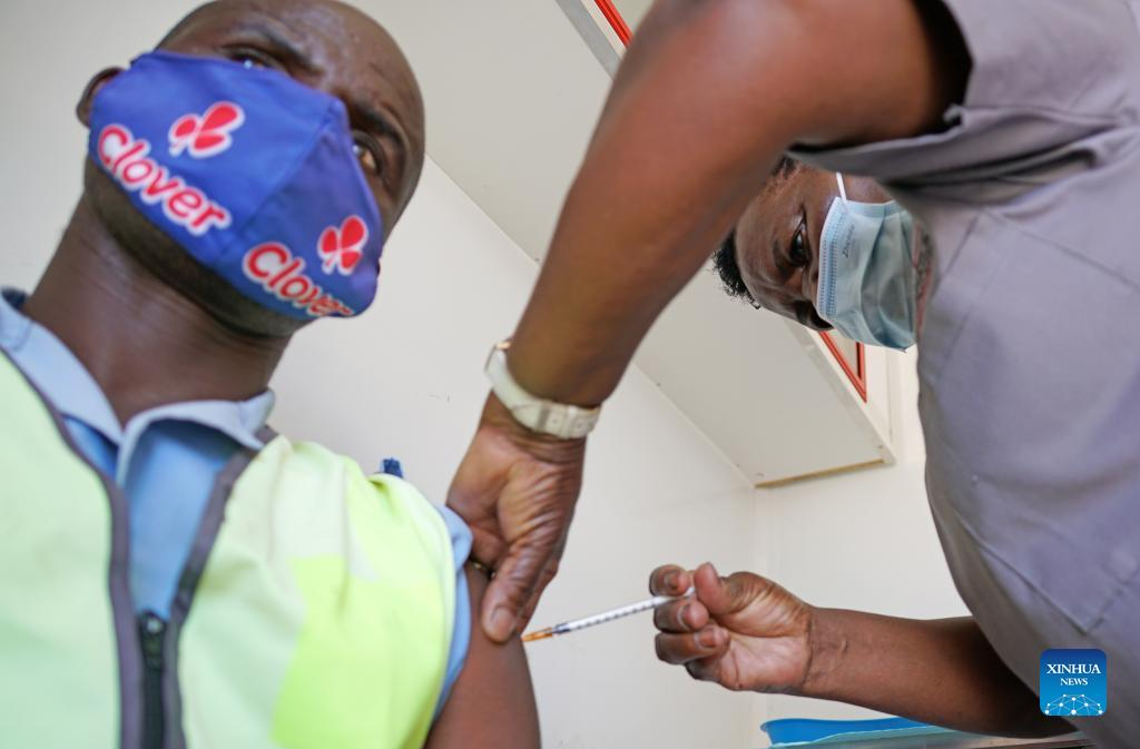 A resident receives a dose of COVID-19 vaccine in Windhoek, Namibia, on Jan. 9, 2022. The total number of confirmed COVID-19 cases in Africa has exceeded the 10 million mark with the rapid transmission of the Omicron variant, which has surfaced in at least 33 African nations. (Xinhua/Chen Cheng)