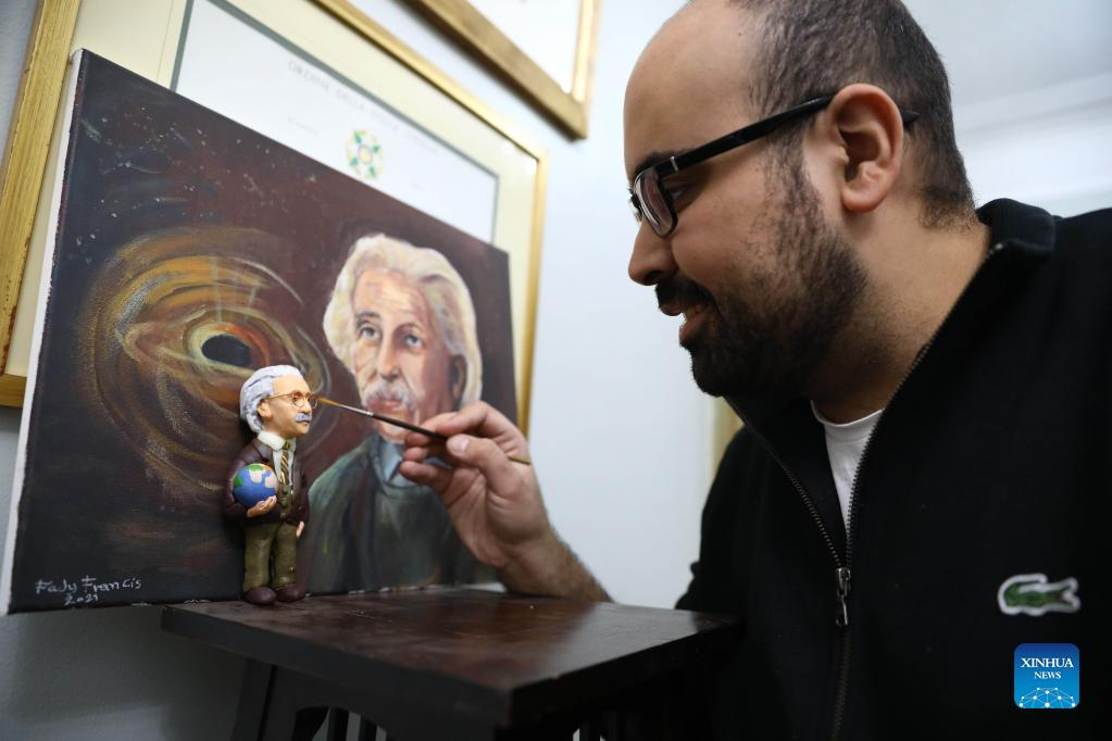 Egyptian artist Fady Francis cleans his handmade miniature statue of physicist Albert Einstein at his workshop in Cairo, Egypt, on Jan. 2, 2022. On a table in downtown Cairo, Fady Francis, 30, aligns miniature sculptures of 100 influential world figures, standing side by side in harmony, although the figures were from different cultures, spoke different languages and lived in different eras in history. (Xinhua/Ahmed Gomaa)