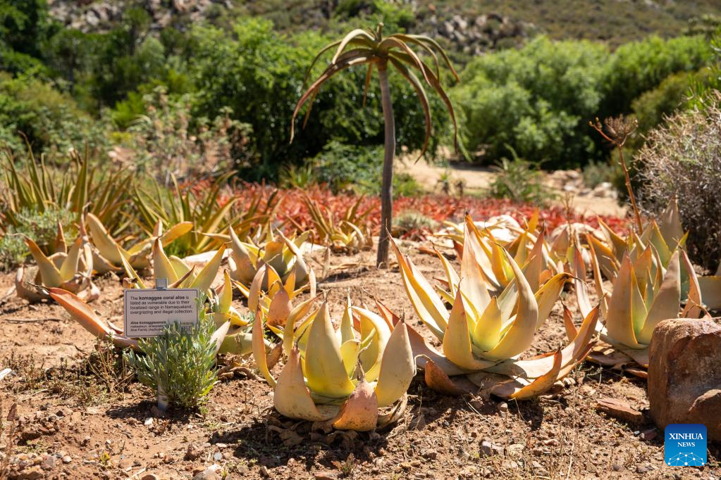 Photo taken on Jan. 23, 2022 shows aloe plants at the Karoo Desert National Botanical Garden in Worcester, South Africa. The 154-hectare Karoo Desert National Botanical Garden cultivates and displays a wide variety of plants endemic in arid and semi-arid environments. (Xinhua/Lyu Tianran)