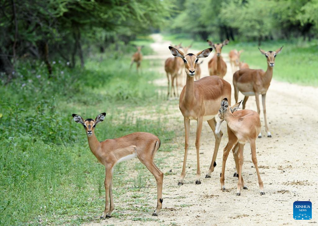 Photo taken on Jan. 7, 2022 shows impalas at the Gaborone Game Reserve in Gaborone, capital of Botswana.