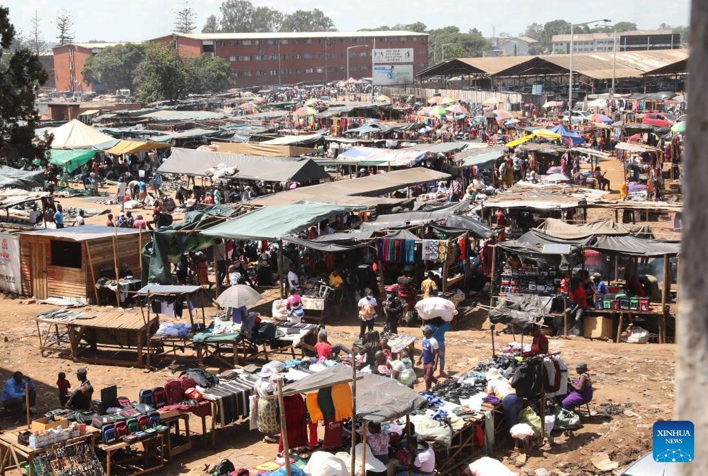 Photo taken on Feb. 8, 2022 shows makeshift markets in Mbare, south of downtown Harare, Zimbabwe.