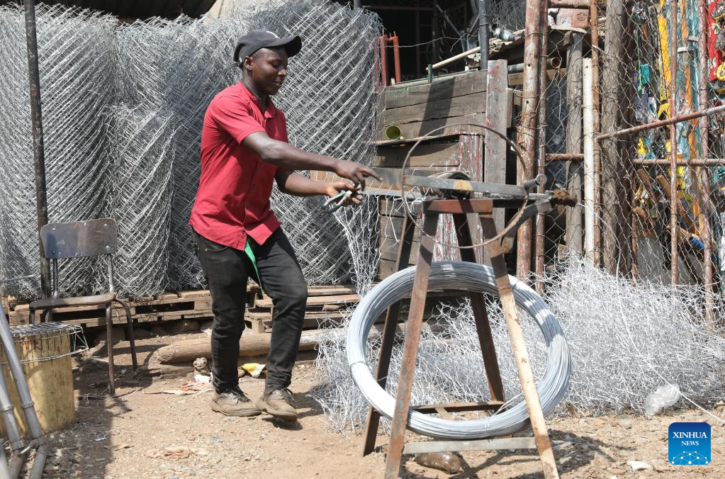 A man makes fences in Magaba, Mbare, Harare, Zimbabwe, Feb. 8, 2022.