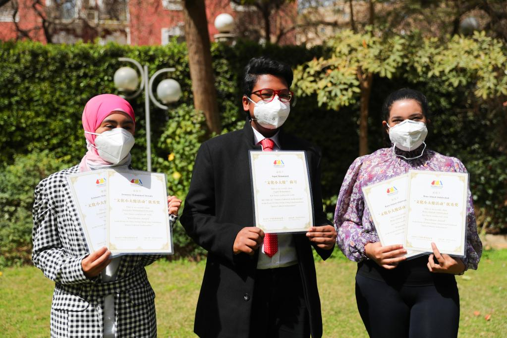 Liao awarded the winner certificates recently to Sajed and two other girls Joumana Mohamed Mostafa and Rana Ahmed Abdelwahab, whose works about the Beijing Winter Olympic Games have stood out in an international competition in China.