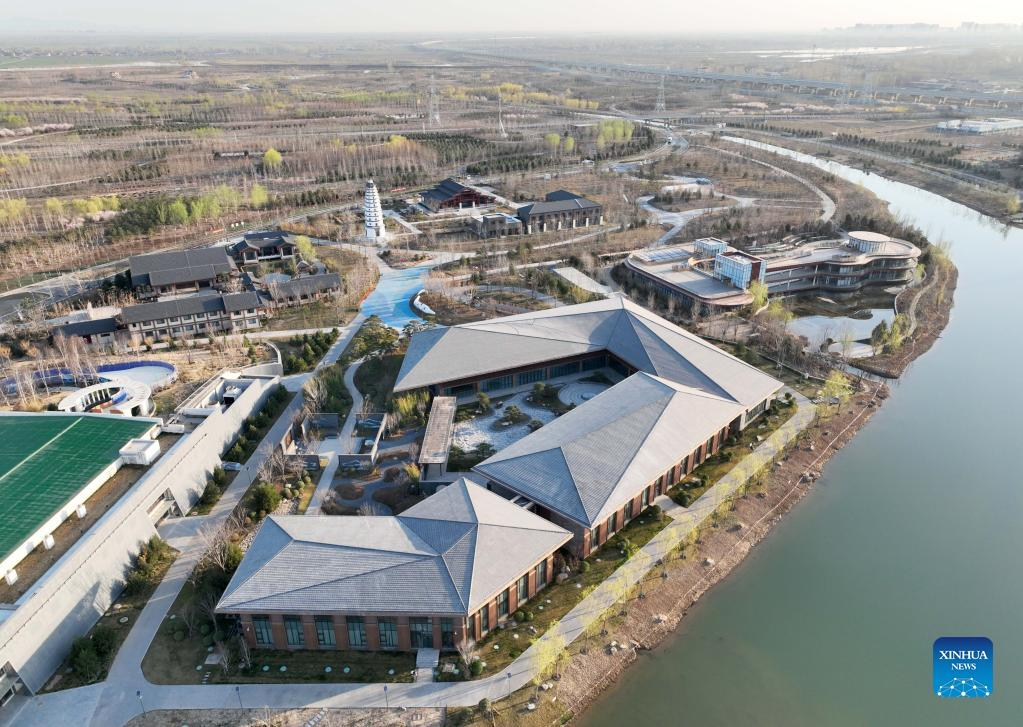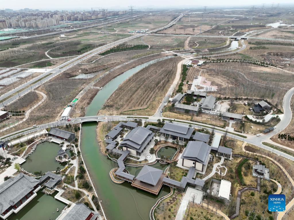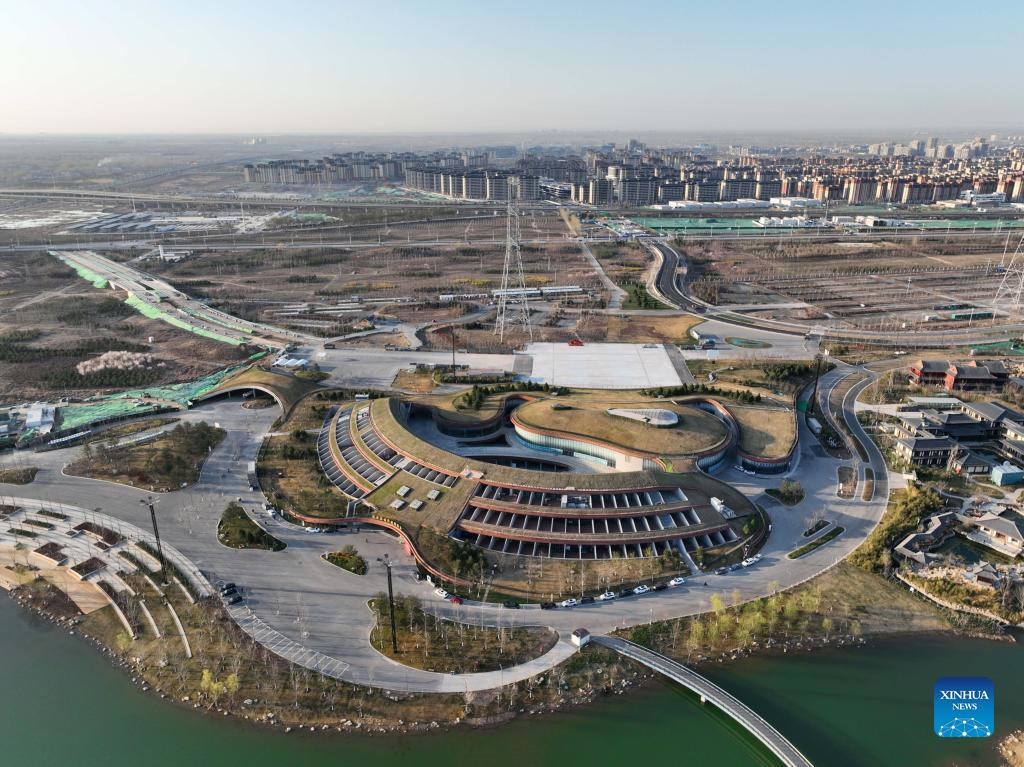 Aerial photo taken on March 30, 2022 shows Xiong'an country park in Xiong'an New Area, north China's Hebei Province. The Xiong'an country park will be opened to the public soon. (Xinhua/Xing Guangli)