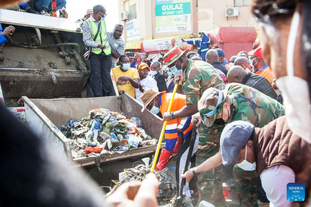 People take part in a cleaning activity on the Kaunda Day in Lusaka, Zambia, on April 28, 2022. Zambians on Thursday marked the inaugural Kaunda Day in honor of the country's founding leader Kenneth Kaunda with a call to promote the value of unity that he espoused. (Photo by Martin Mbangweta/Xinhua)