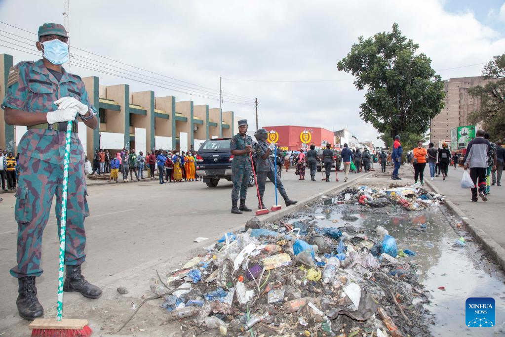 Soldiers take part in a cleaning activity on the Kaunda Day in Lusaka, Zambia, on April 28, 2022. Zambians on Thursday marked the inaugural Kaunda Day in honor of the country's founding leader Kenneth Kaunda with a call to promote the value of unity that he espoused. (Photo by Martin Mbangweta/Xinhua)
