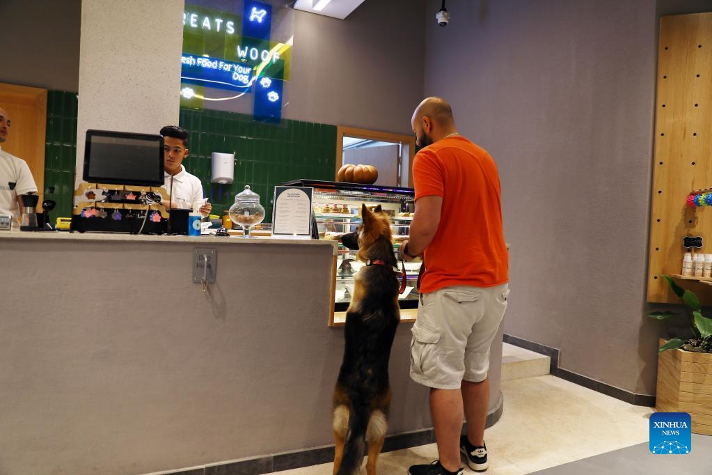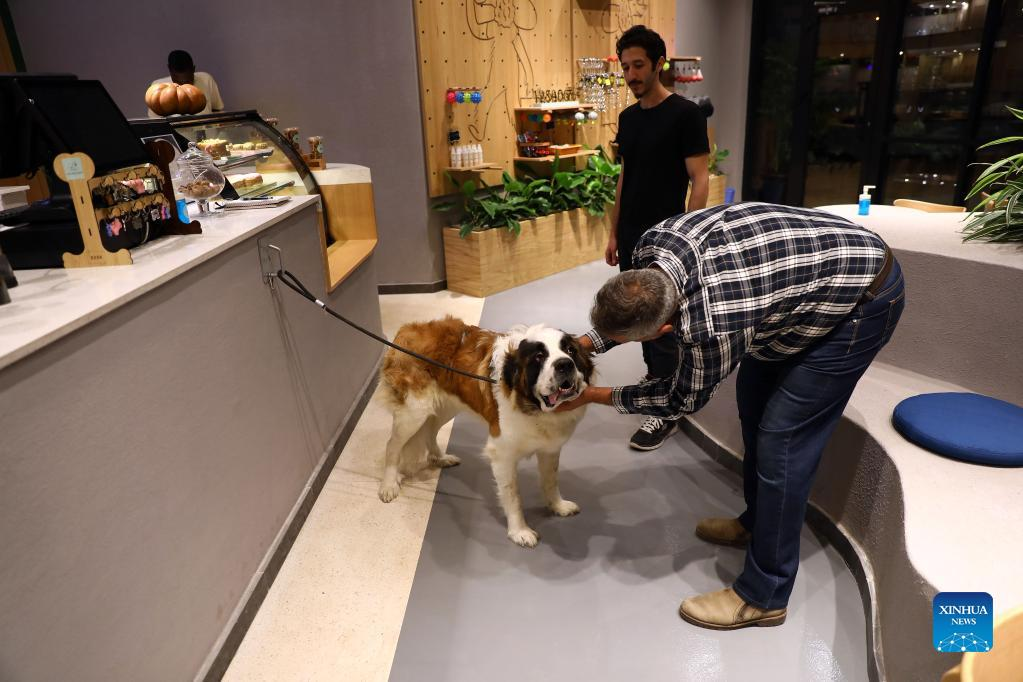 A man orders snacks for his dog at a dog cafe in Giza, Egypt, on May 15, 2022. (Xinhua/Ahmed Gomaa)