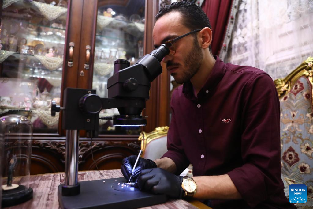 ROSETTA, Egypt, June 3 (Xinhua) -- On a table at his home in Rosetta, a port city in northern Egypt, self-taught artist Ibrahim Bilal displayed a variety of his signature mini sculptures made with pencil tips.