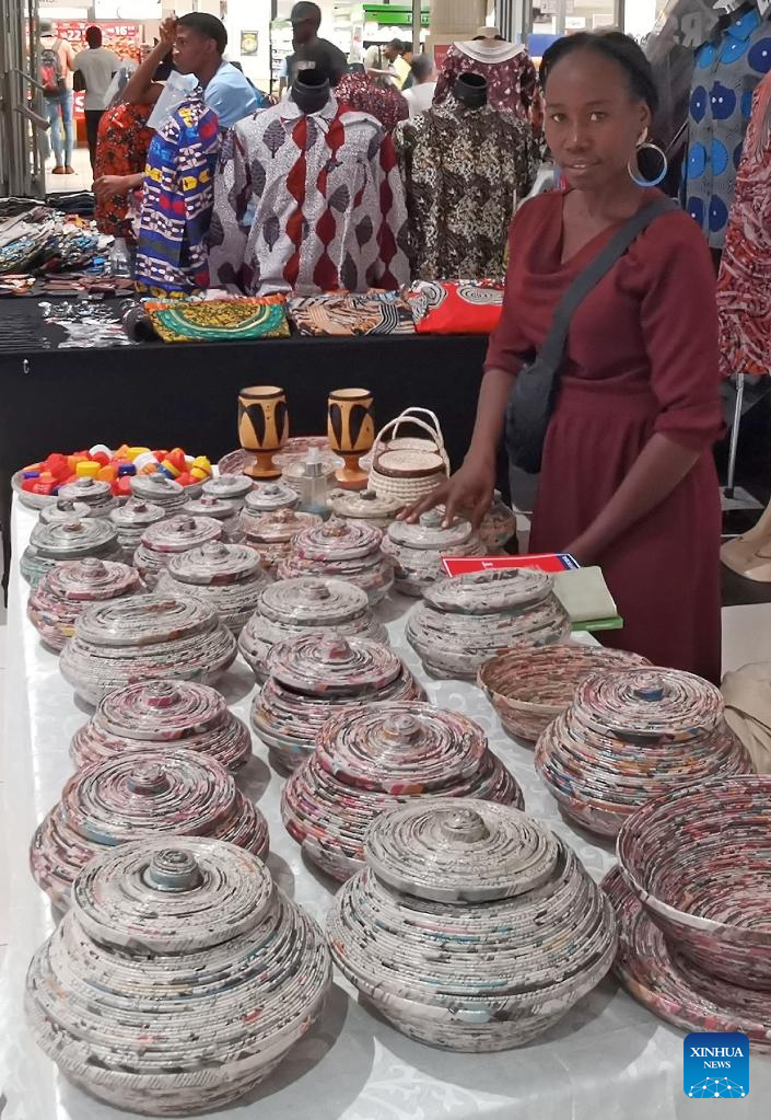 WINDHOEK, June 5 (Xinhua) -- A Namibian artist is transforming discarded waste and old newspapers into artwork. Equipped with glue and varnish, Josefina Awala, from the capital Windhoek, uses old newspapers to create items such as storage baskets and jewellery.
