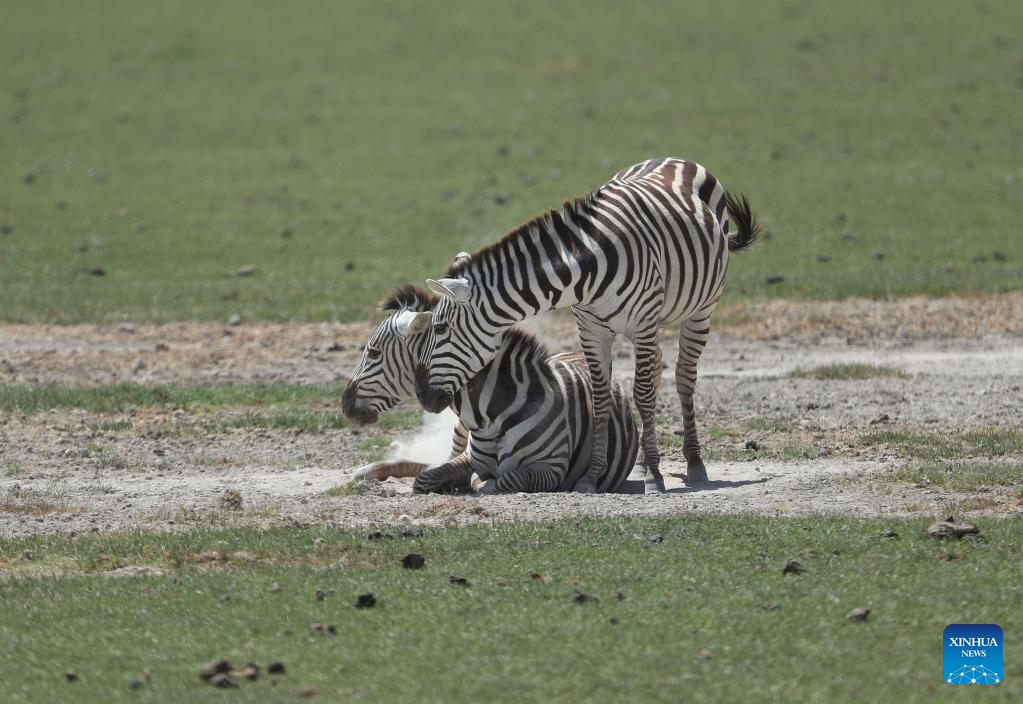 Photo taken on June 11, 2022 shows zebras at the Amboseli national park, Kenya. (Xinhua/Long Lei)
