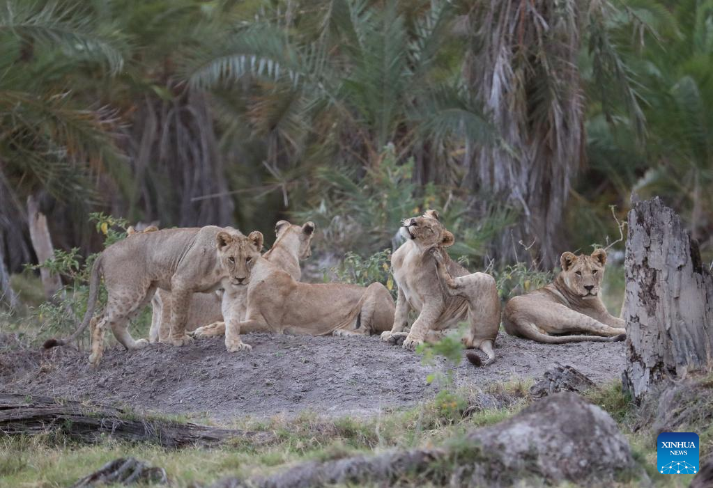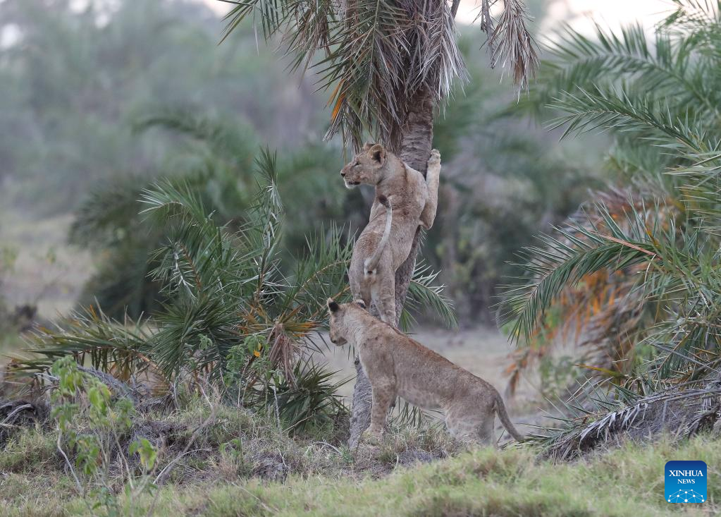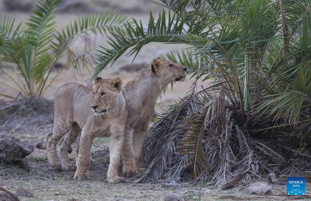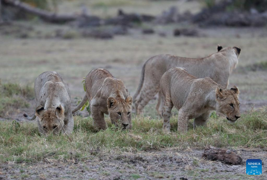 Photo taken on June 12, 2022 shows lions at the Amboseli national park, Kenya. (Xinhua/Long Lei)
