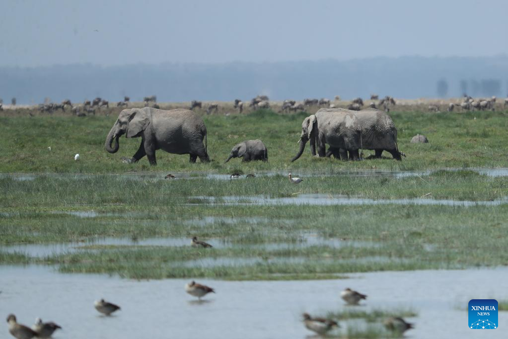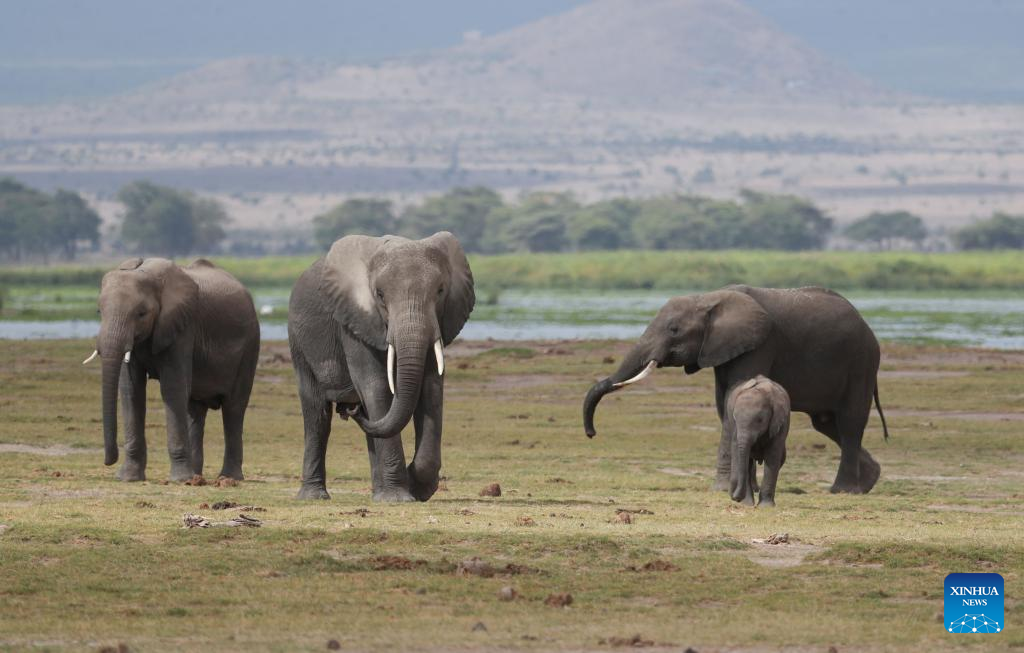 Photo taken on June 12, 2022 shows elephants at the Amboseli national park, Kenya. (Xinhua/Long Lei)
