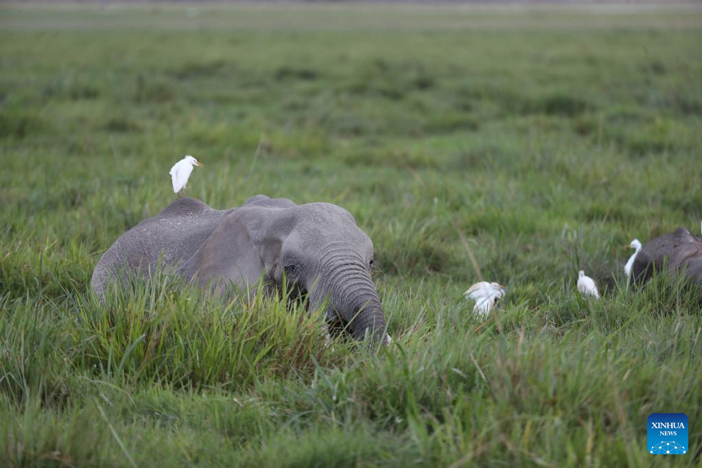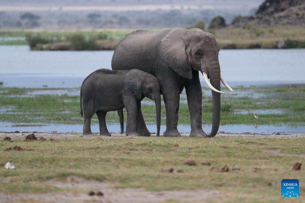Photo taken on June 11, 2022 shows elephants at the Amboseli national park, Kenya. (Xinhua/Long Lei)