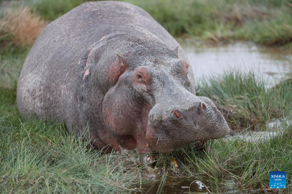 Photo taken on June 11, 2022 shows a hippo at the Amboseli national park, Kenya. (Xinhua/Long Lei)