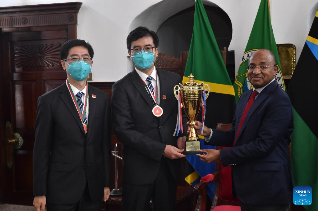 DAR ES SALAAM, Sept. 10 (Xinhua) -- Tanzania's Zanzibar President Hussein Ali Mwinyi on Saturday awarded 21 members of the Chinese medical team with medals for their one-year stellar medical services in the Zanzibar archipelago.