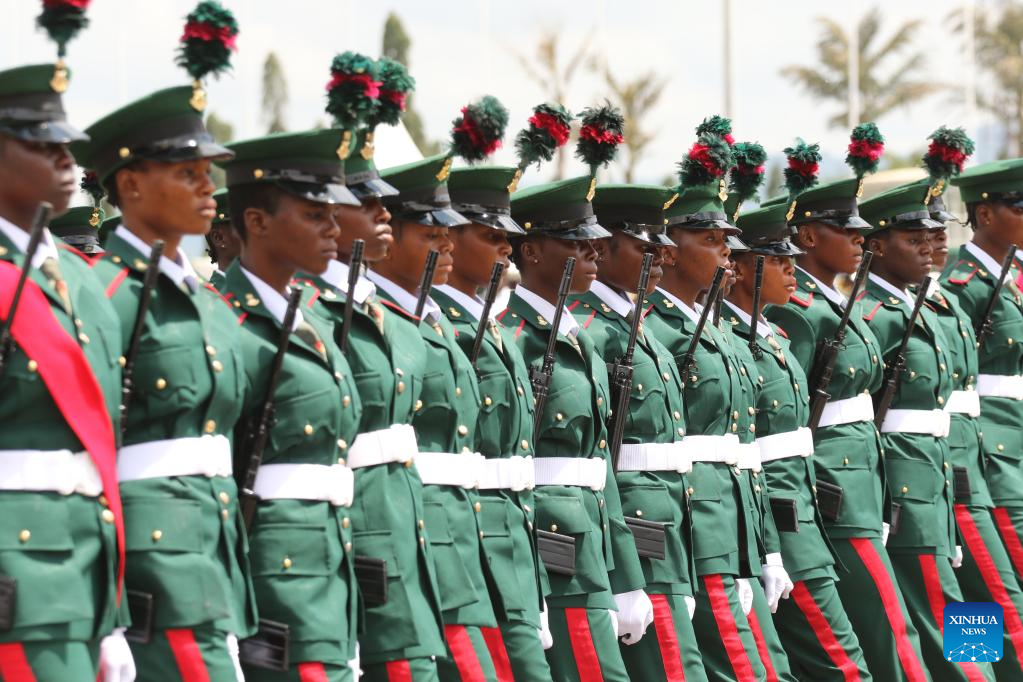 Photo taken on Oct. 1, 2022 shows soldiers participating in a parade marking Nigeria's Independence Day in Abuja, Nigeria. (Photo by Emma Houston/Xinhua)
