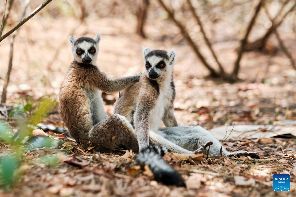Lemurs are seen near Antananarivo, Madagascar, Oct. 21, 2022. Many species of lemurs are listed on the International Union for Conservation of Nature (IUCN) Red List of Threatened Species and are in danger of extinction due to habitat destruction and illegal hunting in recent years. (Photo by Iako Randrianarivelo/Xinhua)