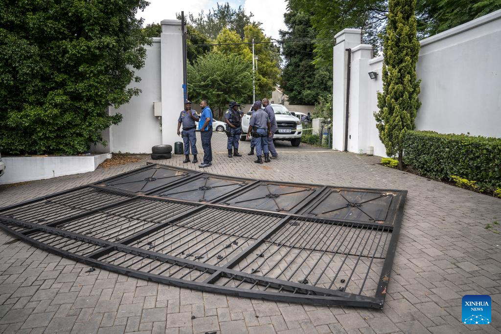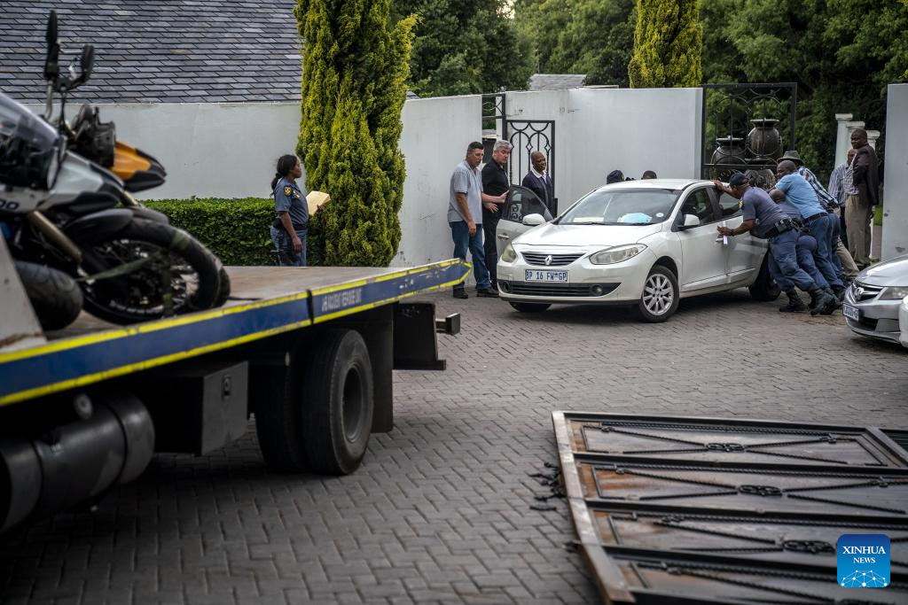 Police are seen at the hideout of an Israeli gang leader in Johannesburg, South Africa, Nov. 17, 2022. The South African police said Thursday that they have arrested a 46-year-old Israeli gang leader wanted for attempted murder and seven other people. (Photo by Shiraaz Mohamed/Xinhua)