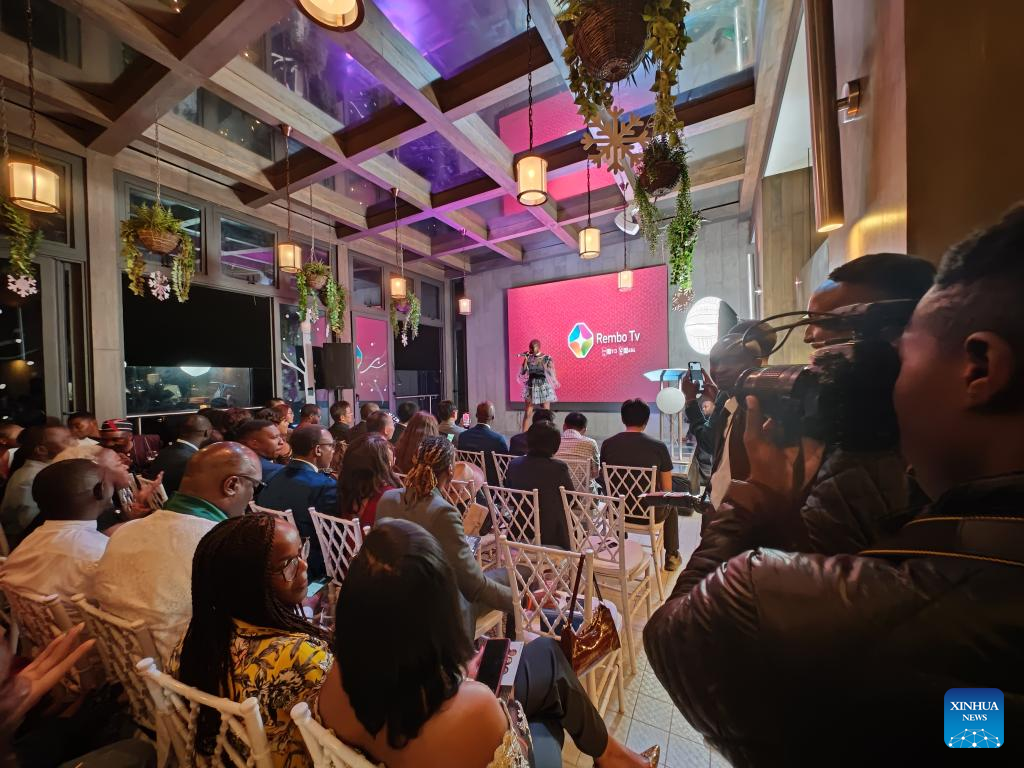 This photo taken on Dec. 8, 2022 shows the launching ceremony of the Swahili drama series KIU, in Nairobi, Kenya. Chinese pay television firm StarTimes on Thursday evening launched the new drama series in Kenya amid its growing efforts to produce local content. (Xinhua/Li Yahui)