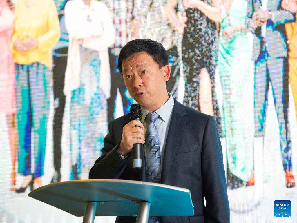 Wang Qianxu, chief executive officer of StarTimes Kenya, speaks during the launching ceremony of the Swahili drama series KIU, in Nairobi, Kenya, Dec. 8, 2022. Chinese pay television firm StarTimes on Thursday evening launched the new drama series in Kenya amid its growing efforts to produce local content. (Xinhua/Li Yahui)