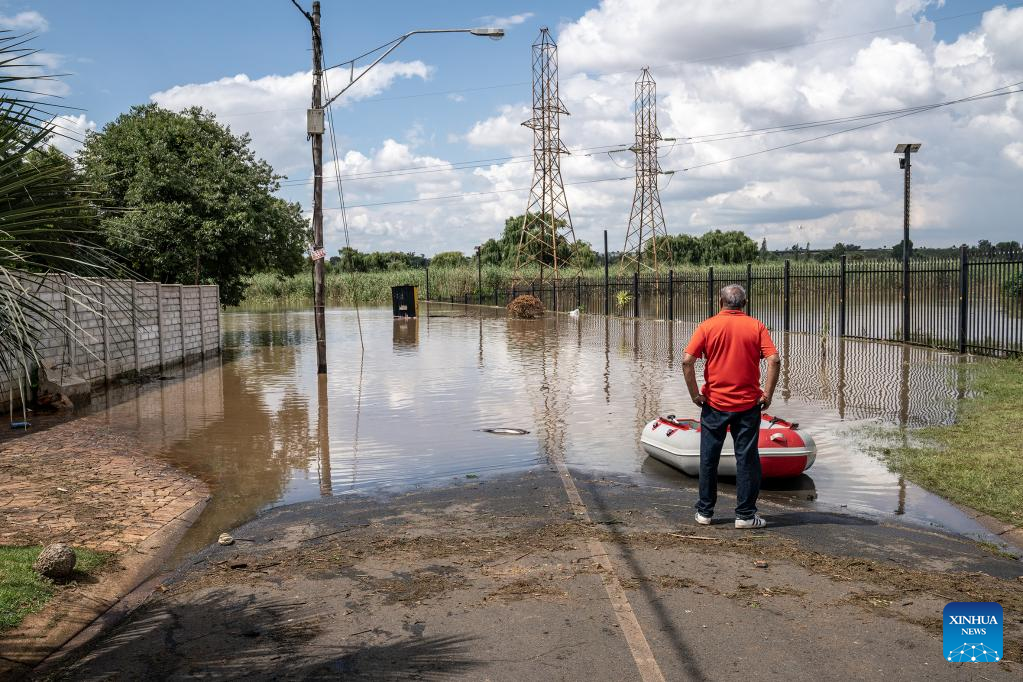 A man stands in a flooded area after heavy rain in Johannesburg, South Africa, Dec. 9, 2022. (Photo by Shiraaz Mohamed/Xinhua)