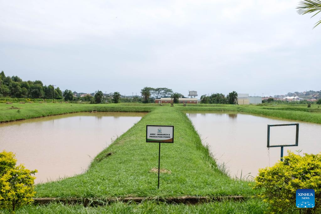 This photo taken on Dec. 21, 2022 shows fishponds at the Aquaculture Research and Development Centre in Kajjansi, Wakiso District, Uganda. (Photo by Hajarah Nalwadda/Xinhua)