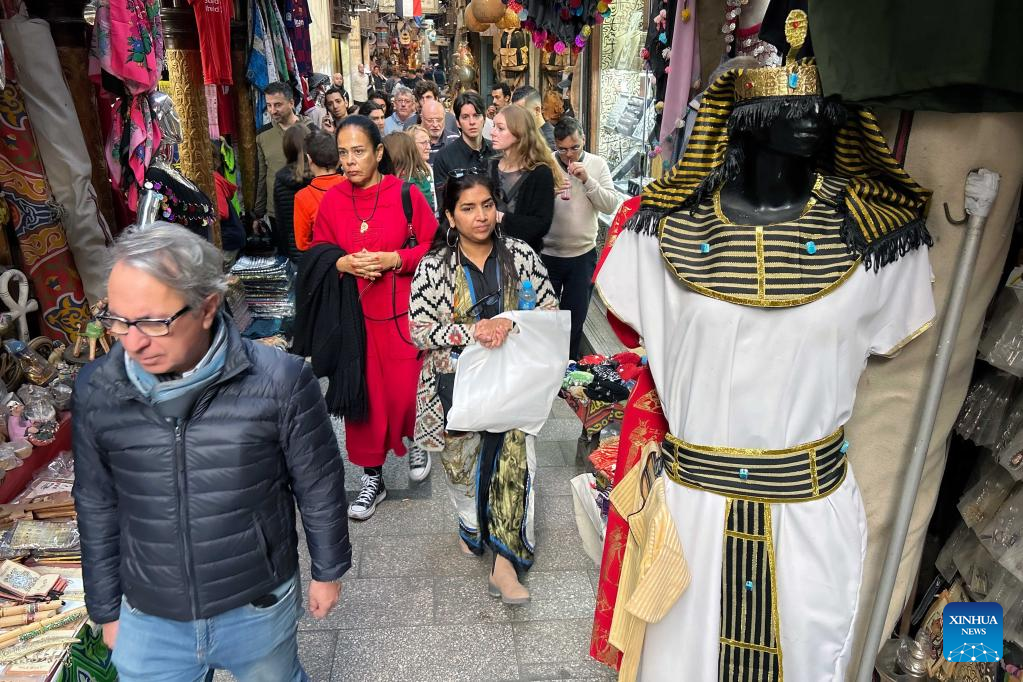CAIRO, Jan. 7 (Xinhua) -- Shop owners in Khan el-Khalili, one of the most famed tourist bazaars in the Egyptian capital Cairo, are expecting the return of Chinese guests after China announced its easing of travel restrictions starting from Jan. 8.