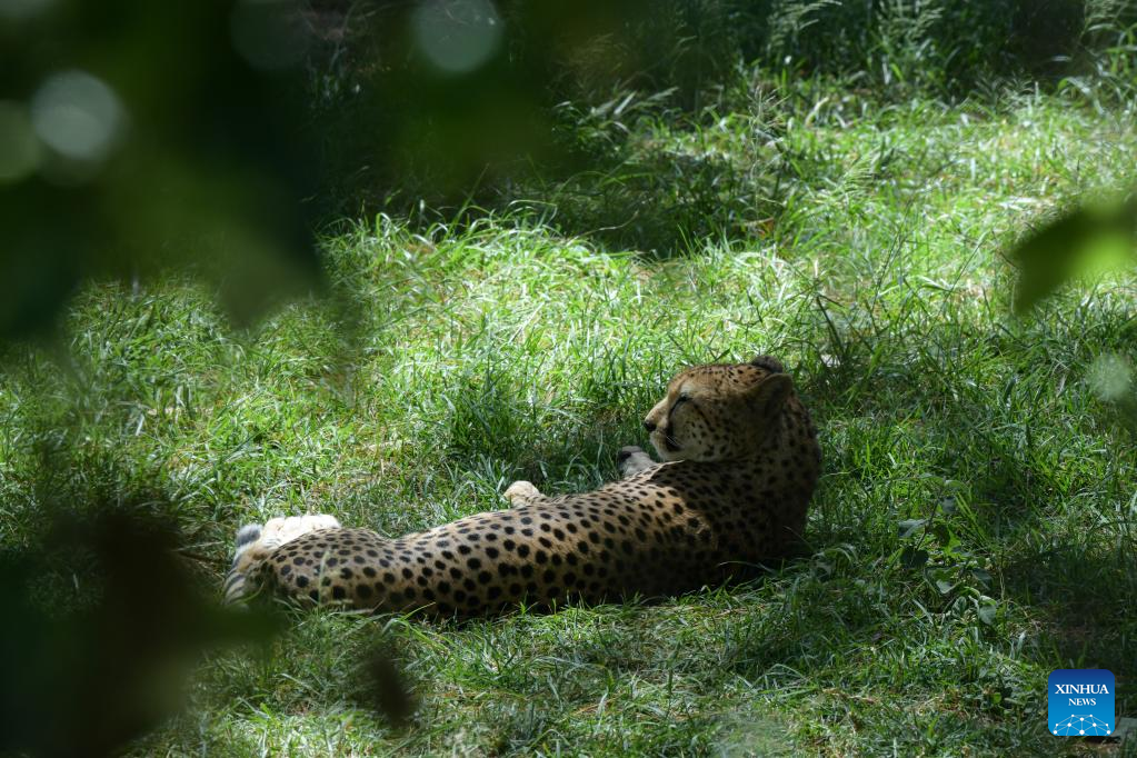 A cheetah rests at the Animal Orphanage in Mount Kenya Wildlife Conservancy in Nanyuki, Kenya, Feb. 4, 2023. The orphanage provides shelter and care for the injured, neglected, abused or frightened wild animals. (Xinhua/Han Xu)
